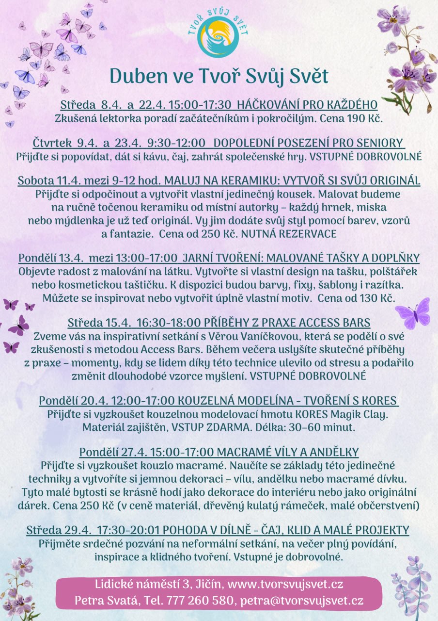 Ve čtvrtek 2. dubna probíhá v Tvoř Svůj Svět celodenní program pro děti. Pro veřejnost bude otevřeno pouze na objednání.
